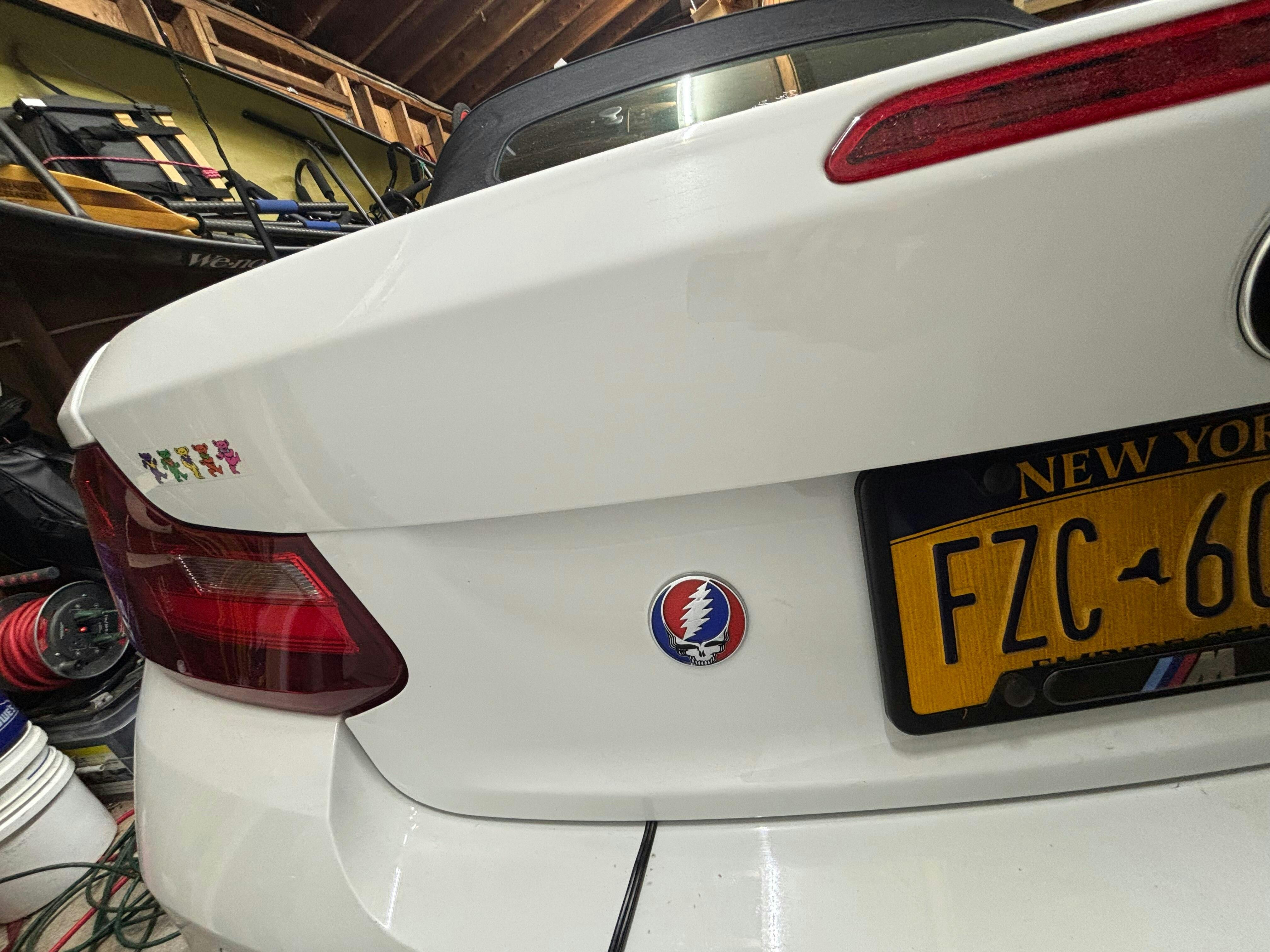 GRATEFUL FRED Badges can be applied to virtually any flat surface, such as laptops, coolers, cars, and more. They are completely safe for use on painted surfaces, including cars. This is because GRATEFUL FRED badges are manufactured to the same specifications as badges used by all the major car manufacturers. The automotive industry standard is chrome-plated ABS plastic with 3M automotive-grade adhesive, ensuring safety, durability, and longevity. What works for renowned brands like Ford and Ferrari also works for Fred.